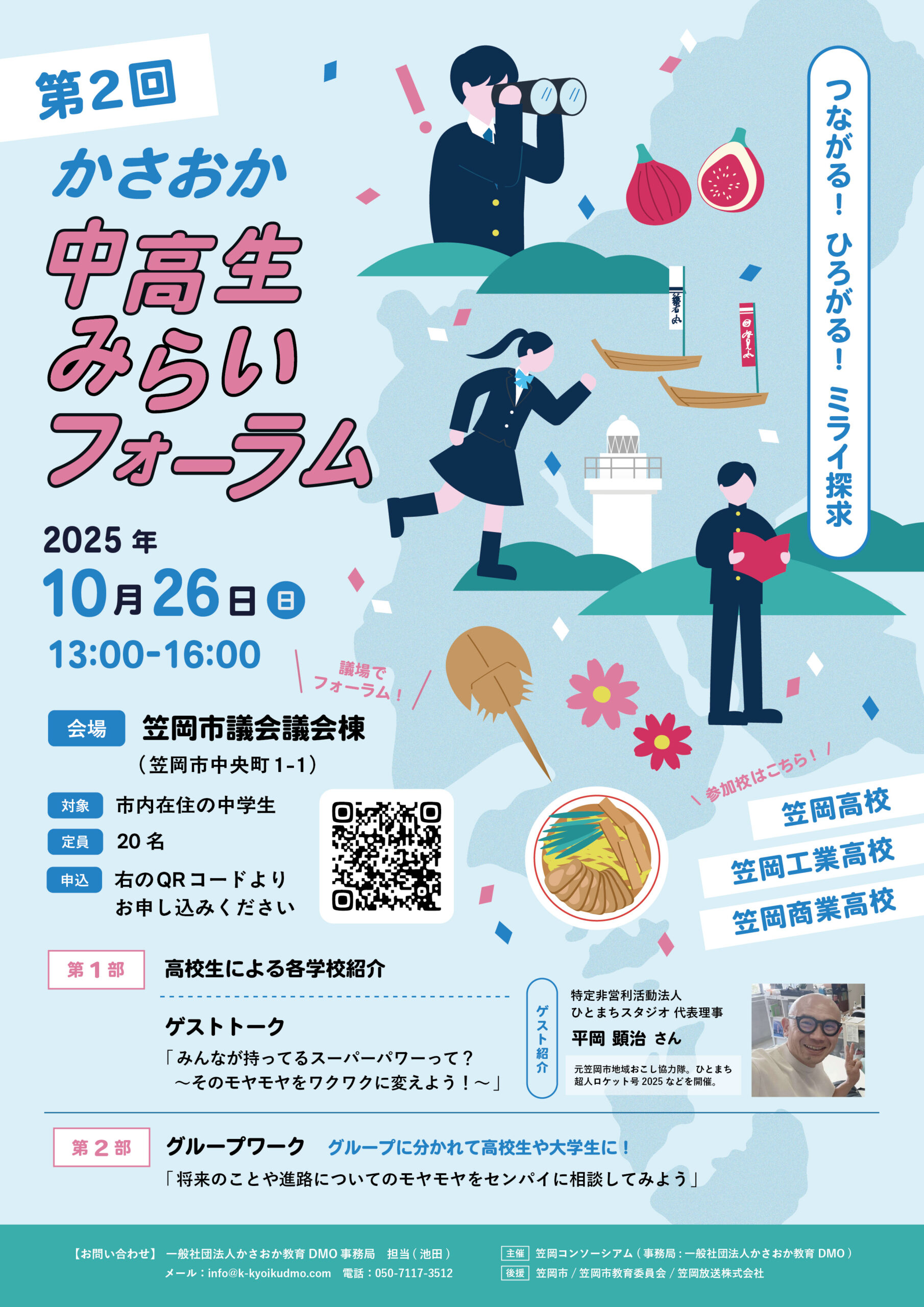 来る2025年10月26日(日)に、皆さんの未来探求を応援するスペシャルなイベント「第2回かさおか中高生みらいフォーラム」が開催されます!